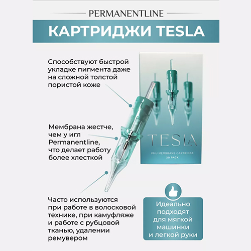 Картриджи для перманентного макияжа TESLA от Permanentline. Защитная мембрана мягкая, обеспечивает улучшенный возврат иглы и предотвращает попадание пигмента. Ход иглы мягкий и равномерный, самые мелкие детали будут подчеркнуты.