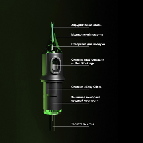 Round Liner Long Taper — Длинная и одновременно острая заточка 7.5мм является самой популярной конфигурацией в мире среди мастеров перманентного макияжа и татуировки.